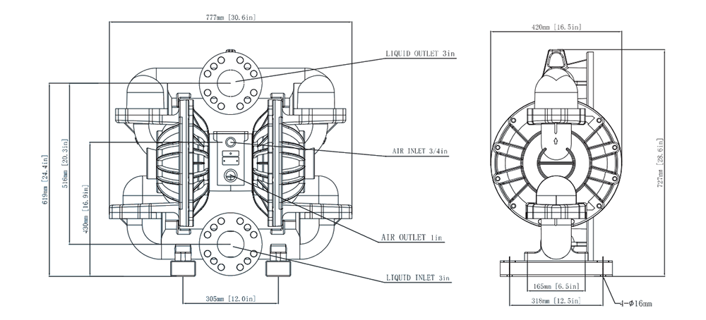 | Tamaño de entrada/salida de fluido | 3" |