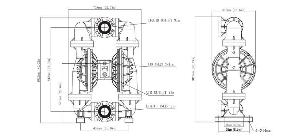 | Tamaño de entrada/salida de fluido | 3" |