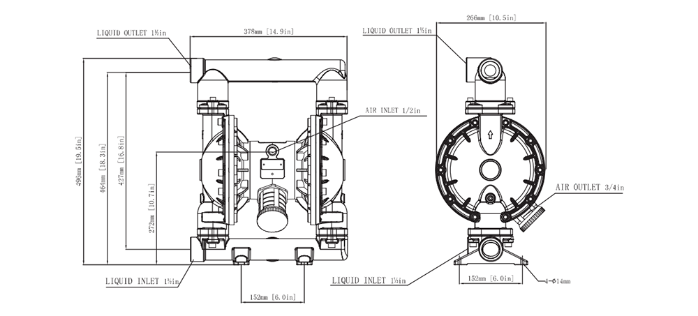 | Tamaño de succión y descarga | 1½ en/Npt/F |
